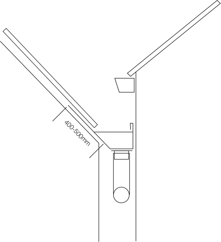 The diagram illustrates the design of a custom gutter that I have previously installed at another residence, in a ColorBond roof, again where traditional gutters were unable to create fall.