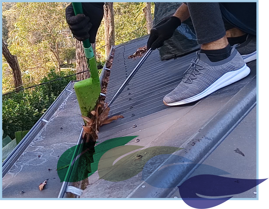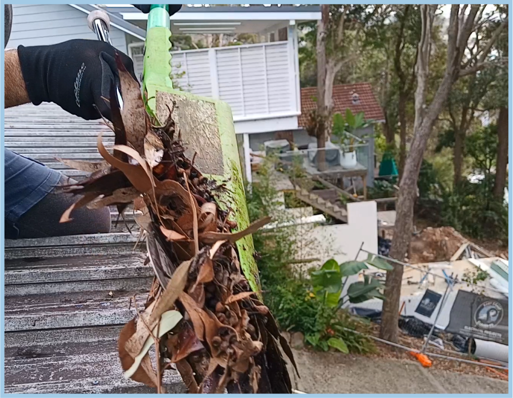 Debris is taken from your gutters & placed into your green bin or garden bags...