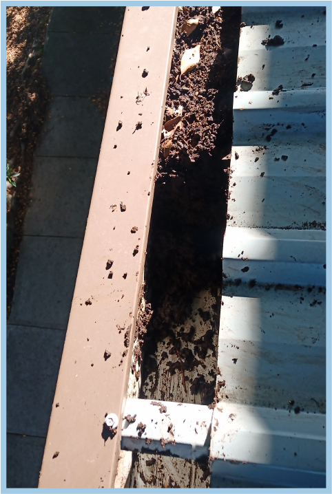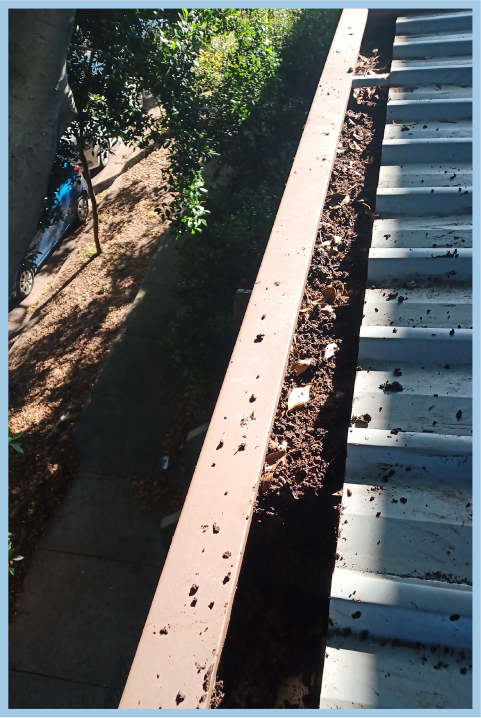 Removing the bulk of the debris by hand is the first step to a clean gutter. Photos area taken to catalogue the amount of debris within your gutters. Debris is taken from your gutters & placed into your green bin or garden bags...