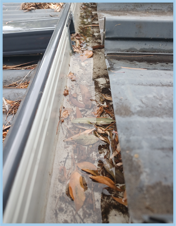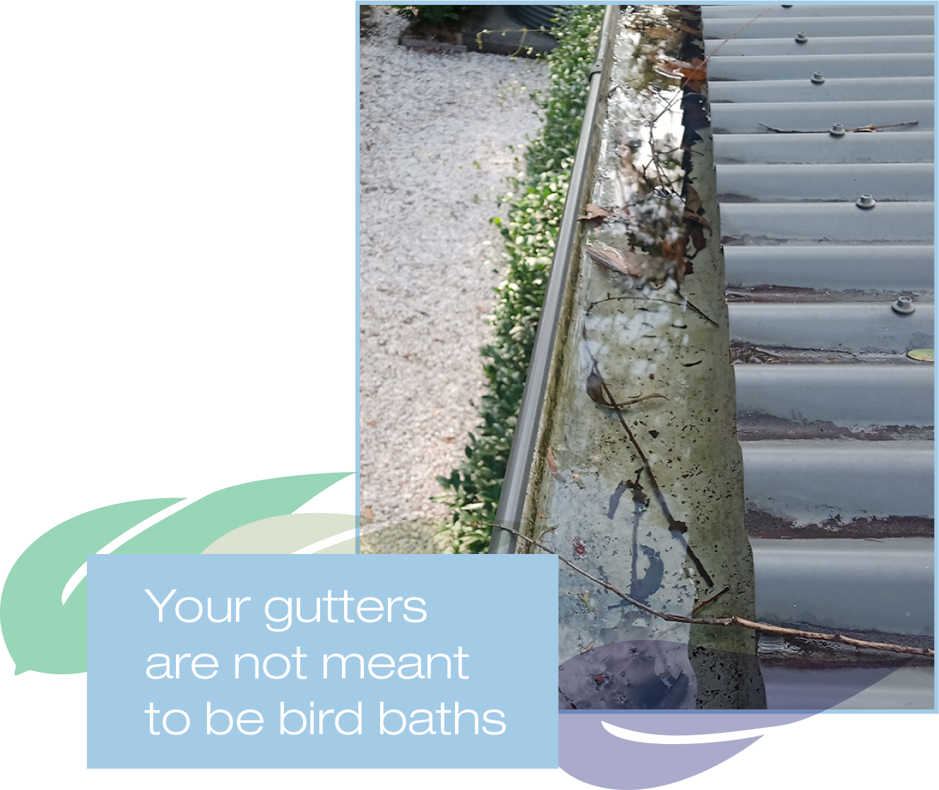 Again, water sitting in your gutters collects dirt & begins to accumulate more dirt, creating an even larger dam.