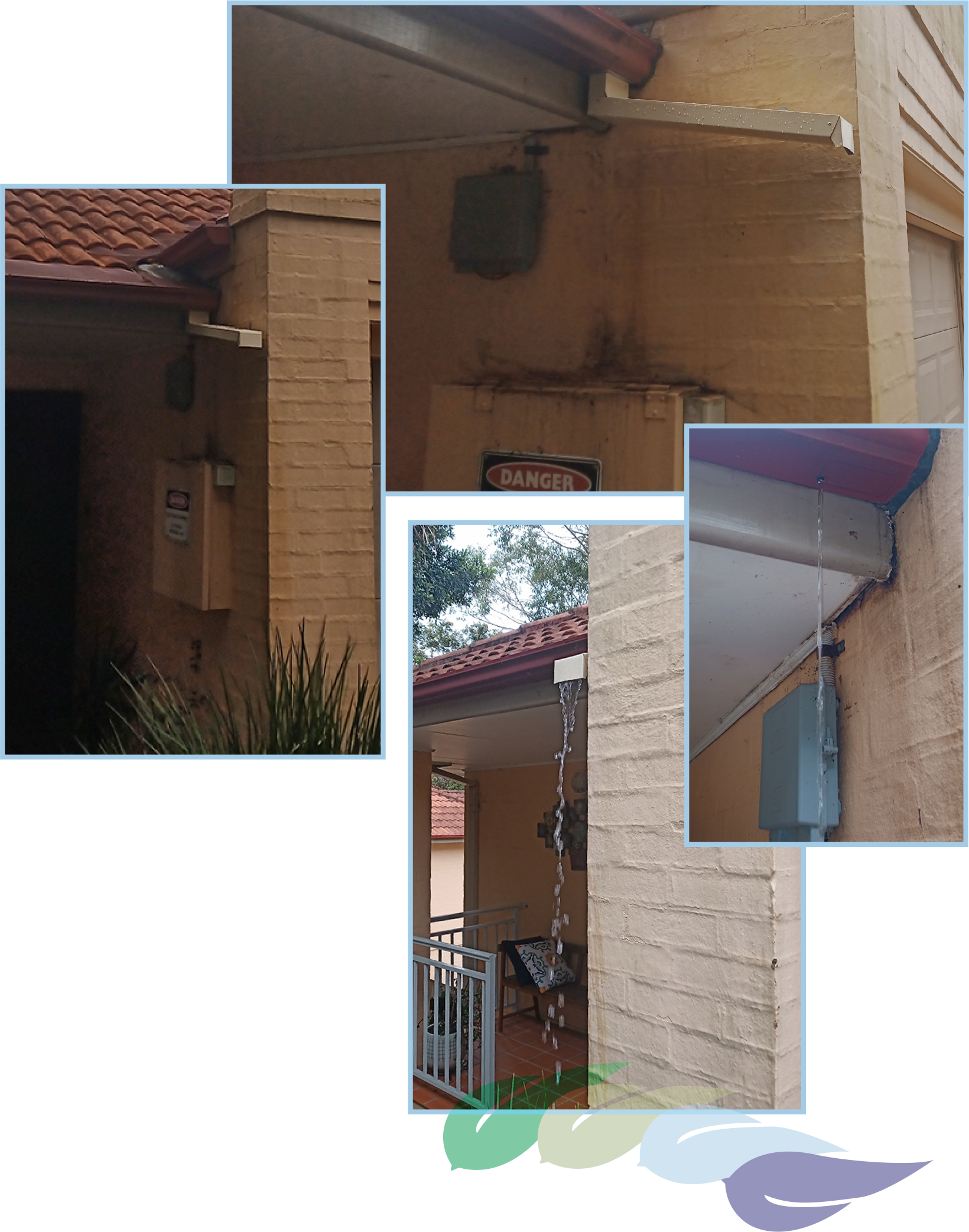 In heavy rains the gutter was over-flowing onto the electricity box directly below.